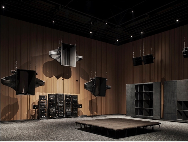 오디움 내부의 전시실 벽은 나무로 단차를 두어 흡음력을 높였다. 웨스턴 일렉트릭(Western Electric)사의 대표 오디오 시스템 중 하나인 '미러포닉'(Mirrorphonic)이 전시된 지하 2층 라운지 공간은 청음에 유효한 패브릭(Fabric)을 자재로 사용해 '플라워' 형태의 공간을 연출했다. 이는 대형극장용 오디오 '미러포닉'의 음향을 부드럽고 입체적으로 만들어낸다.