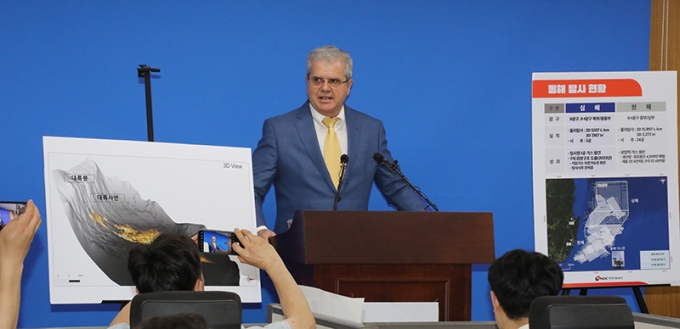 아브레우 고문은 이날 오전 정부세종청사에서 가진 기자회견에서 동해 프로젝트 유망성을 높게 본 근거에 대해 "20%의 성공 가능성은 80%의 실패 가능성이 있다는 말"이라며 "만약 유망구조를 딱 하나만 도출했다면 시추까지 진행해야 한다고 하지 않았을 것이지만 '20% 성공률'이 갖는 의미는 5개 유망구조를 시추했을 때 1개에서 석유를 찾을 가능성이 있다는 뜻"이라고 말했다.