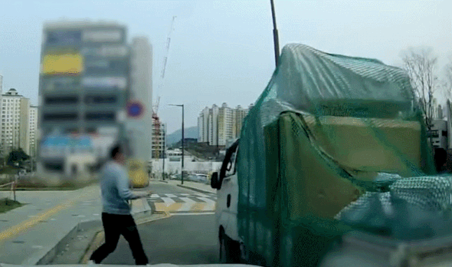 당시 트럭 운전자는 굴러가는 차량을 세우기 위해 차량 옆 부위를 붙잡으려 했으나 이미 속도가 붙어 멈추기엔 역부족이었던 상황이다.