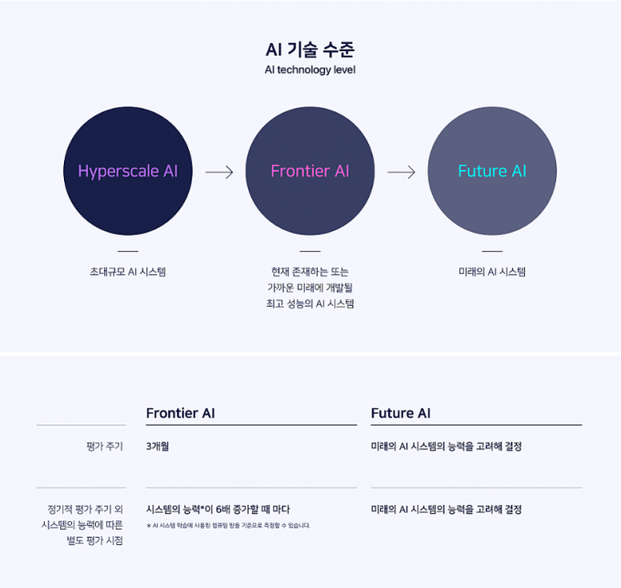 네이버 ASF는 AI 시스템이 초래할 수 있는 위험을 각각 '통제력 상실 위험'과 '악용 위험'으로 정의하고, 이에 대응하기 위한 방법을 설계한 것이 특징이다. 먼저 인간이 AI 시스템에 영향을 미치지 못하게 되는 '통제력 상실 위험'을 완화하기 위해, 'AI 위험 평가 스케일'을 통해 AI 시스템의 위험을 주기적으로 평가하고 관리한다. 특히 현존 최고 성능의 AI 시스템을 '프런티어 AI'로 정의하고, 이 기술 수준에 해당하는 AI 시스템에 대해서는 3개월마다 위험 평가를 수행한다. 또한 시스템의 능력이 기존보다 6배 이상 급격히 증가한 경우에는 그 시점에 추가 평가가 이뤄진다.