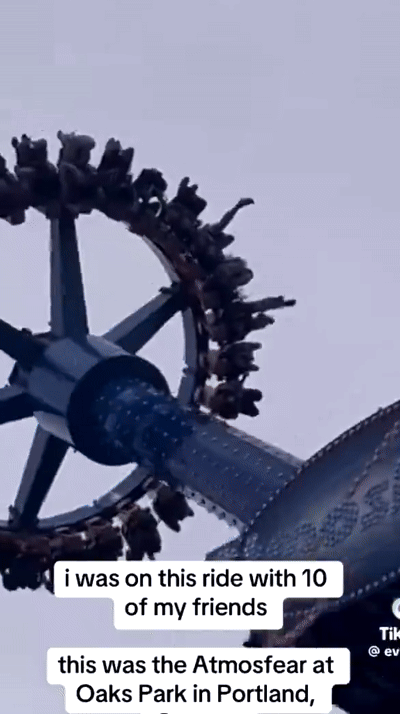 16일(현지시간) AP통신 등에 따르면 미국 오리건주 포틀랜드의 오크스파크에서 지난 14일 오후 2시55분쯤 승객을 태운 놀이기구 '앳모스피어'(AtmosFEAR)가 승객들을 태운 채 작동을 멈췄다. 앳모스피어는 원 모양의 기구가 좌우로 움직이다가 이내 360도로 회전하는 놀이기구다.