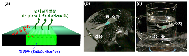 국내 연구진이 얼음물에서나 끓는물에서도 빛을 내는 '전계발광소자'를 개발했다. 전계발광은 LED나 OLED 디스플레이처럼 전기를 가하면 빛을 내는 물질을 뜻한다.