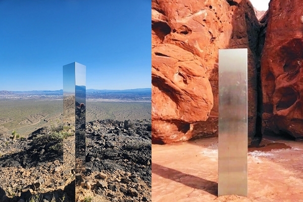 사진 속 모노리스는 직사각형의 금속제 기둥으로 표면이 매끈해 주변 환경을 반사하고 있다. 높이는 약 3m에 속은 비어 있어 두 사람이 함께 들 수 있는 정도의 무게다. 모노리스란 1968년 스탠리 큐브릭 감독 영화 '2001: 스페이스 오디세이'에 나오는 정체불명의 비석 '모노리스'와 비슷하게 생겨서 붙은 별칭이다.