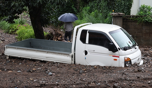 이 지역은 전날 오후 9시부터 현재까지 154㎜의 비가 내렸다. 소방 당국은 이 집 뒤편에서 굴착기 등을 동원해 약 1시간 30분동안 50대 남편 A씨를 수색하고 있지만 토사가 빗물에 계속 흘러내려 작업에 어려움을 겪고 있다.