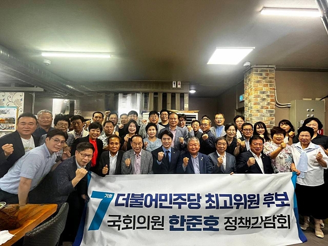 이날 정책간담회를 마치자, 경기도 호남향우총연합회는 한준호 최고위원 후보를 지지하고 나섰다.