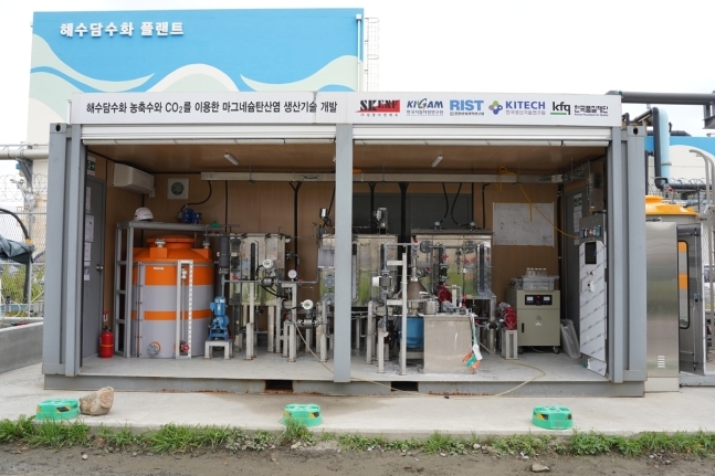 시범 실증시설은 연간 1만톤의 농축수를 처리하는 과정에서 마그네슘 탄산염을 연간 60톤 이상 생산하고 이산화탄소는 22톤 이상 처리할 수 있는 수준이다.