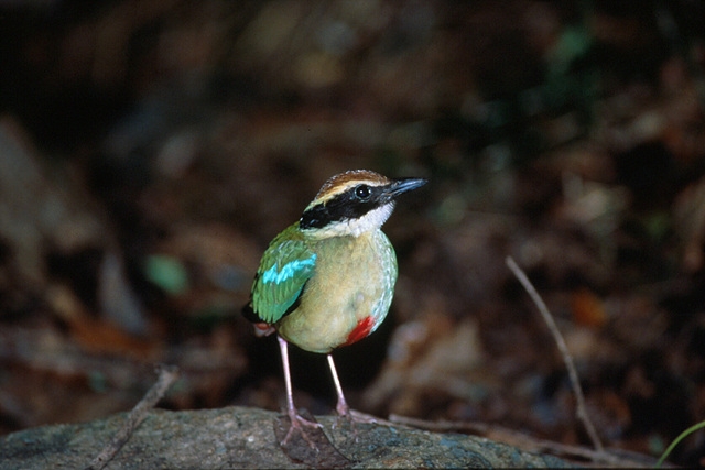 멸종위기 야생생물 Ⅱ급인 '팔색조'는 참새목 팔색조과에 속하는 조류로, 몸에 비해 긴 분홍색 다리를 가지고 있다.