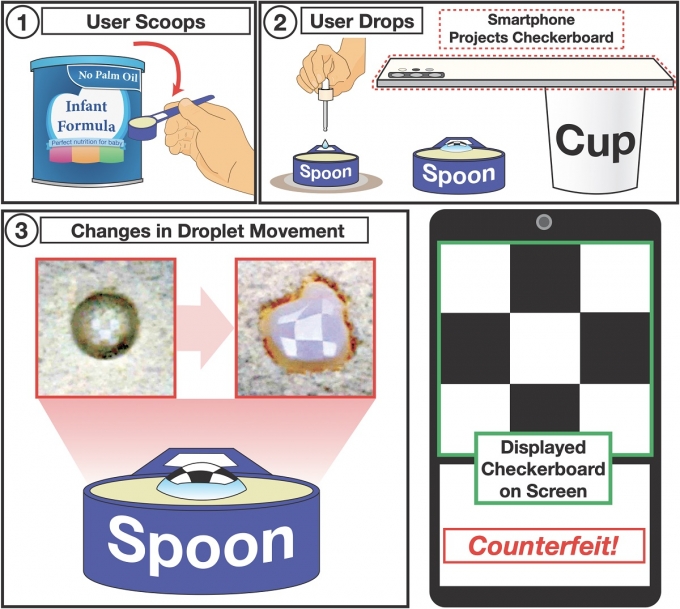 이에 따라 소비자들도 이 시스템을 활용하면 자신의 스마트폰 카메라로 분유 가루 위에 떨어진 물방울의 움직임으로 분유의 가짜여부를 직접 확인할 수 있다.