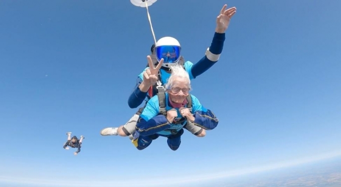 102세 할머니가 스카이다이빙에 성공하면서 전세계에 큰 울림을 주고 있다.