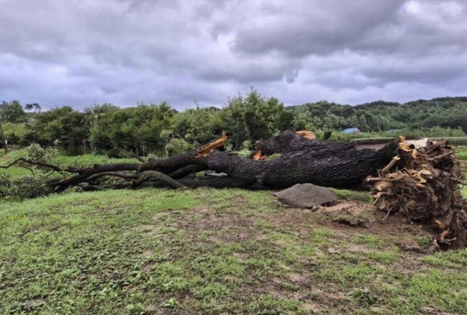 지난 7월 21∼22일 이틀간 경기 북부 지역을 중심으로 500㎜가 넘는 비가 쏟아지면서 나무 밑동이 뿌리째 뽑혀 접합이나 치료가 불가능하다는 판정을 받았다.