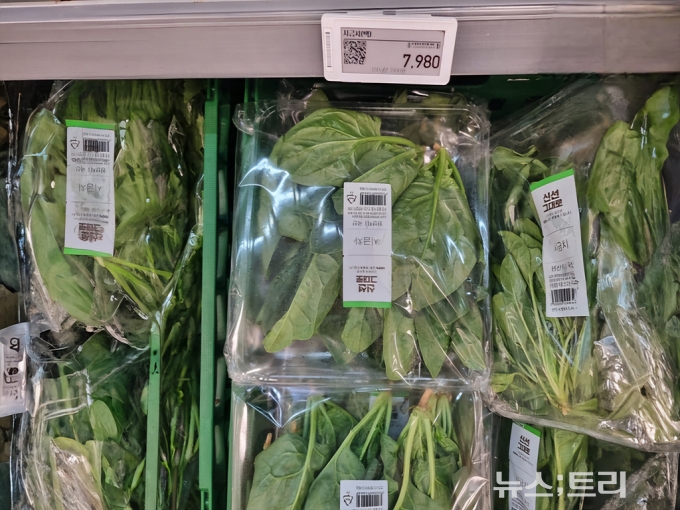 지난 10일 오전 10시 서울 수서동에 있는 이마트 시금치 코너에 붙어있는 가격표는 놀랍다 못해 기절할 노릇이었다. 시금치뿐만이 아니었다. 15장 남짓한 적상추 한묶음은 3980원에 판매되고 있었다. 손질 배추는 1포기에 무려 9900원에 판매되고 있다.