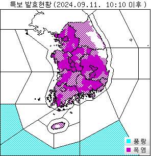 11일 기상청에 따르면 강원, 경북, 제주 등지의 일부 산간지방을 제외한 전국이 폭염특보로 뒤덮였다. 체감온도가 33~35℃일 때 내려지는 폭염특보가 9월에 발령된 것은 지난 2010년 이후 14년만의 일이다.