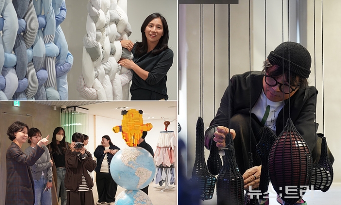 재단법인 아름다운가게가 창립 22주년을 맞아 4일부터 서울 을지로 하트원에서 진행하는 '그물코 프로젝트'에서 이경래와 김효진 작가는 아름다운가게를 통해 기부받은 물품으로 자원순환을 통해 지속가능성을 강조하는 11개 작품을 전시했다.