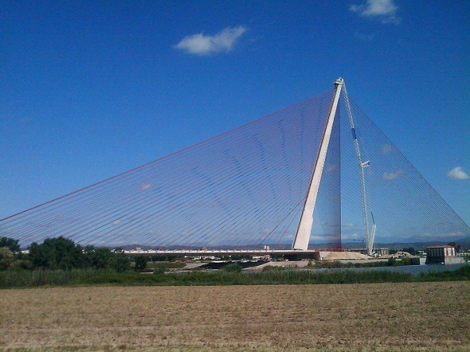 높이 192m인 이 다리의 구조물은 중앙에서 삼각형 모양으로 여러 개의 케이블이 있는 콘크리트 주탑으로 구성돼 있다.