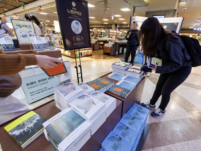 한강의 노벨문학상 수상을 계기로 국내 문학책 판매량과 대여량이 껑충 뛰었다.