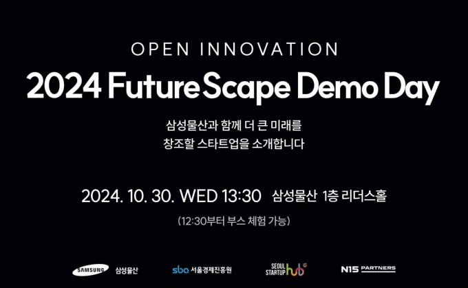 삼성물산 건설부문이 30일 오후 1시 30분부터 서울 강동구 삼성물산 본사 1층 리더스홀에서 오픈 이노베이션 '2024 퓨처스케이프' 데모데이 행사를 개최한다.