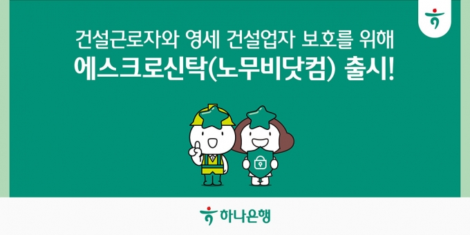 하나은행(은행장 이승열)은 건설근로자와 영세 건설업자를 보호하기 위한 전자적 대금지급시스템 '에스크로 특정금전신탁(노무비닷컴)' 상품을 출시했다고 1일 밝혔다.