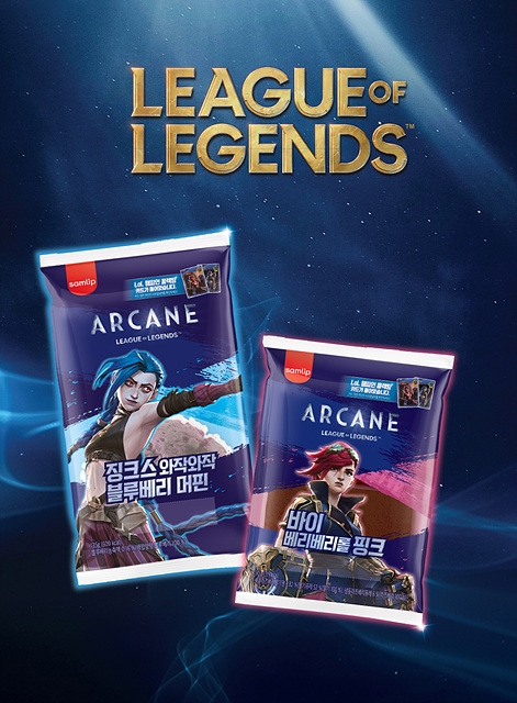 삼립은 LoL을 애니메이션으로 만든 작품인 '아케인(Arcane) 시즌2'를 주제로 다양한 제품을 선보인다. '아케인'은 LoL 세계관을 기반으로 한 장편 애니메이션이다. 대도시 필트오버와 지하도시 자운이 마법 기술과 신념을 둘러싸고 전쟁을 벌이는 가운데 두 자매가 서로 반대편에 서서 갈등하는 이야기를 다룬다.