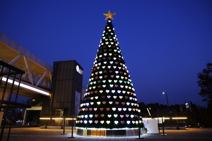 아모레퍼시픽재단은 '다시 보다, 희망의 빛 1332'라는 이름의 공병 트리를 만들어 노들섬에 설치했다고 22일 밝혔다. 지난 5월 아모레퍼시픽재단은 서울문화재단과 '노들 컬처 클러스터' 협약을 맺고 이번 '노들 윈터 페스타'와 연계해 이 공병트리를 선보인다.