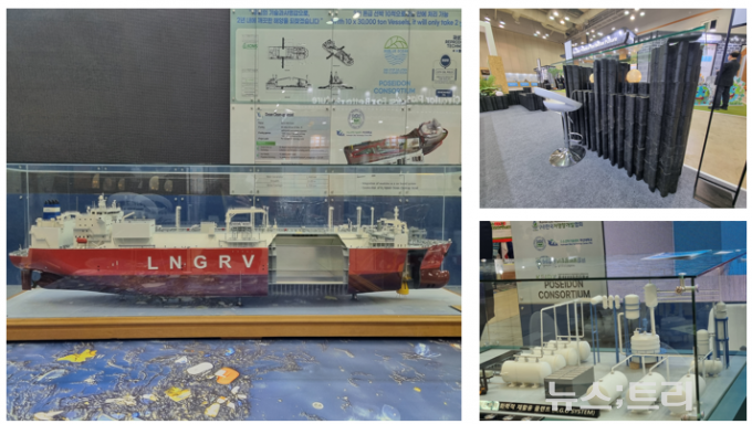 정책 홍보관을 나서니 거대한 선박 모형이 전시부스가 나타났다. 이곳은 국내 17개 기관 및 기업의 연합체인 '포세이돈 컨소시엄' 전시관이었다. 포세이돈 컨소시엄은 선박에 해양폐기물 수거설비를 부착하고, 수거된 폐플라스틱을 선박에 부착된 태양광과 풍력 발전설비 전력을 통해 저온분해 정제유와 폐플라스틱 토목자재를 생산하는 '리블루 오션' 프로젝트를 진행하고 있다.