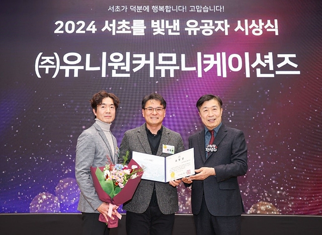 유니원커뮤니케이션즈가 '2024 서초를 빛낸 유공자 시상식'에서 '2024 서리풀페스티벌'의 안정적인 행사 운영과 지역사회의 화합을 이끌어낸 공로를 인정받아 서초구청장 표창을 수상했다고 10일 밝혔다.