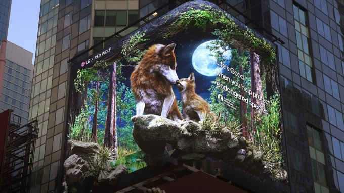 LG전자가 미국 뉴욕 타임스스퀘어 전광판에서 '붉은 늑대'를 주제로 4번째 'LG와 함께하는 위기동물 보호캠페인'(The LG Endangered Species Series) 영상을 지난 9일(현지시간) 공개했다고 11일 밝혔다.