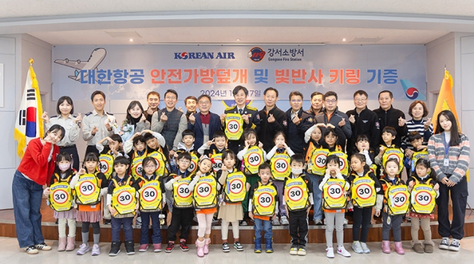 대한항공이 지난 17일 서울 강서소방서에서 버려지는 페트병을 재활용해 제작한 '업사이클링 안전 가방덮개' 500개를 기부했다고 18일 밝혔다.