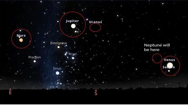 오는 21일 전후로 밤하늘에서 금성, 화성, 목성, 토성, 천왕성, 해왕성 등을 한꺼번에 볼 수 있다.
