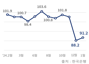 ▲소비자심리지수 추이(자료=한국은행)