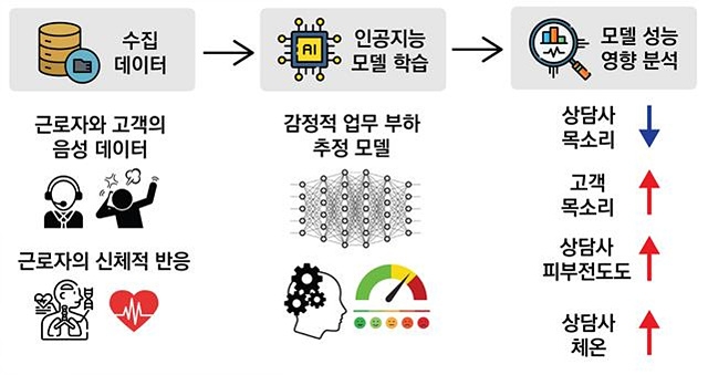 한국과학기술원(KAIST) 전산학부 이의진 교수팀은 중앙대 박은지 교수팀, 미국 애크런대학교 제임스 디펜도프 교수팀과 공동으로 근로자의 감정적 작업 부하를 실시간으로 모니터링할 수 있는 인공지능 모델을 개발했다고 11일 밝혔다.
