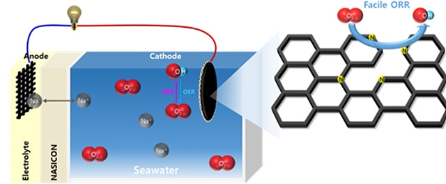 바닷물로 전기를 저장하고 꺼내 쓸 수 있는 해수전지용 촉매 물질을 국내 연구진이 개발했다.