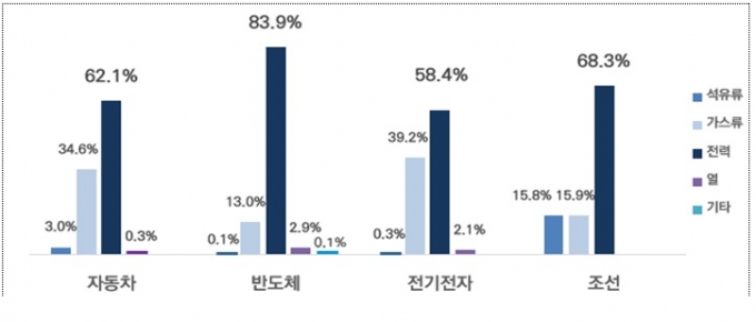▲2022년 주요 업종 에너지 사용 비중 (자료출처=한국에너지공단) 남정임 철강협회 기후환경안전실장은 '철강업 에너지 현안과 대응' 주제발표에서 "지금 철강산업은 현재 미국의 관세압박, 중국의 수출 공세와 더불어 잇따른 전기요금 인상 등으로 '3중고'에 처해있는 상황"이라며 "토요일 전일 경부하 요금제 적용 등 계절‧시간별 요금제 개선, 연료비 연동제의 안정적 운영, 전압별 요금제 시행 등 산업계가 전기요금을 능동적으로 줄일 수 있는 제도보완이 빠르게 마련되어야 한다"고 주장했다. 이어 LNG 자가발전의 확대 및 전력 직접구매제도에 대한 검토도 필요한 상황이라고 말했다.