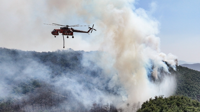 같은날 울산 울주군에서 발생한 산불은 278㏊를 태웠다. 전날 192㏊보다 86㏊(44.7%) 늘어난 수준이다. 이 산불도 진화율이 72%에서 69%로 낮아졌다. 이 산불로 162가구 170명이 대피했다. 진화 작업에는 헬기 12대, 장비 67대, 1900여명이 동원되고 있다.