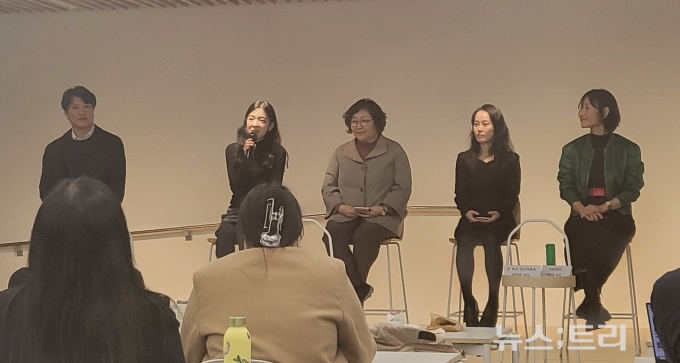 ▲헤이그라운드 성수시작점에서 열린 '지구식탁 토크콘서트' 참가패널들이 발언하는 모습 ©newstree