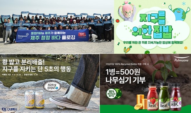동원F&B는 제주 해안 일대에서 플로깅 행사를 지난 18일 진행했고, 샘표는 오는 22일 건강과 환경을 위한 집밥을 실천할 수 있도록 다채로운 레시피와 요리 솔루션을 제안하는 특별 이벤트를 진행한다.