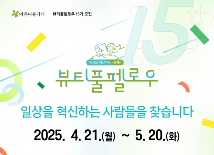 아름다운가게가 사회혁신리더 성장 지원사업인 '뷰티풀펠로우' 제15기 참여자를 모집한다고 24일 밝혔다. 사회혁신가 지원 프로그램인 '뷰티풀펠로우'는 2010년부터 시작해 올해로 15년째다.
