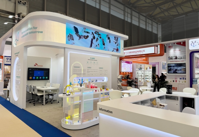 중국 코폴리에스터 시장 점유율 1위인 SK케미칼은 이번 전시회에서 '지속가능한 미래를 위한 실존하는 솔루션'이라는 슬로건을 내걸고 화장품 패키징 분야에서 이미 상용화에 성공한 제품들을 중심으로 선보였다.