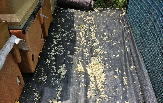 ▲폭우로 떨어진 아까시꽃(사진=양봉협회)