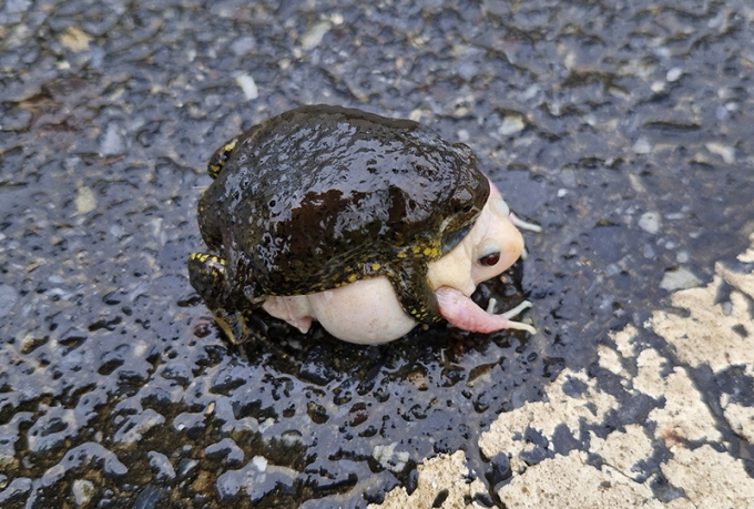 이번에 발견된 알비노 맹꽁이는 암컷으로, 수컷 한 마리가 위에 올라탄 채로 활동하고 있었다.
