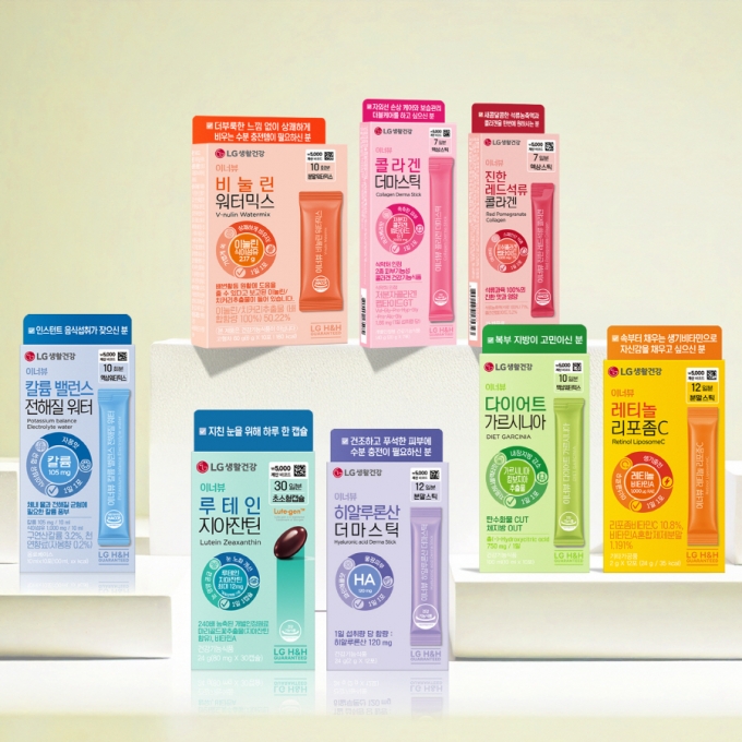 LG생활건강은 24일부터 다이소에서 '이너뷰 바이 리튠' 신제품 8종을 판매한다고 밝혔다. 이너뷰 바이 리튠은 LG생활건강의 프리미엄 건기식 브랜드 '리튠'에서 만든 다이소 전용 브랜드다.