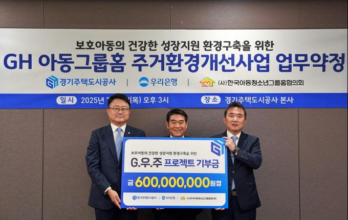 우리은행은 경기주택도시공사(GH), 한국아동청소년그룹홈협의회와 함께 경기도 내 아동그룹홈의 주거환경 개선을 위한 '아동그룹홈 주거환경 개선사업 업무약정(이하 G.우.주 프로젝트)'을 체결했다고 4일 밝혔다. G.우.주 프로젝트는 경기주택도시공사(GH)와 우리은행의 아동그룹홈 주거환경 개선사업을 말한다.