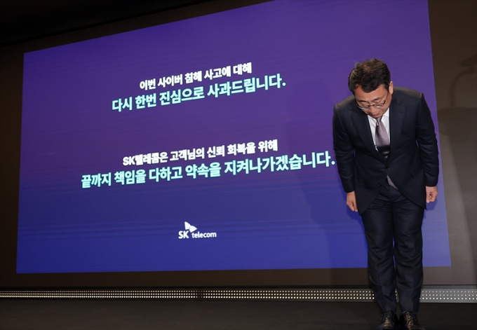 유영상 SKT 대표는 "이번 침해사고에 대해 다시 한 번 깊이 사과 드리고, 고객이 안심하고 맡길 수 있는 수준의 정보보호 체계 구축에 최선을 다하겠다"며 머리를 숙였다.