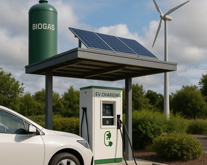 전기차 충전소를 태양광과 바이오가스 등 신재생 에너지 기반으로 설계하면 기존보다 송전 손실이 최대 74.5%까지 줄어든다는 연구결과가 나왔다. 배터리와 전력변환기까지 포함된 복합형 충전소를 활용하면, 전압 저하도 대폭 개선되는 것으로 분석됐다.