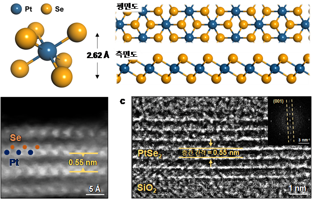 한국과학기술원(KAIST)과 충남대, 미국 센트럴플로리다대(UCF) 연구진은 이차원 신소재 '백금 셀레나이드(PtSe2)'를 활용해 기존보다 반응성이 뛰어난 기체 촉매를 개발했다고 22일 밝혔다.