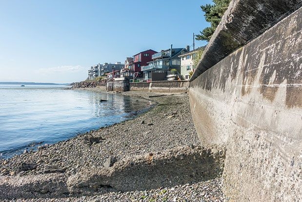 해변은 바닷물이 높아질수록 육지 쪽으로 자연스럽게 이동하며 형태를 유지한다. 하지만 해변가에 집을 지키기 위해 방벽이나 바위 등을 설치하면 해변이 육지 쪽으로 이동할 공간이 없어, 결국 모래사장은 바다 아래로 사라진다. 이를 '해안 압착(coastal squeeze)'이라고 부른다.