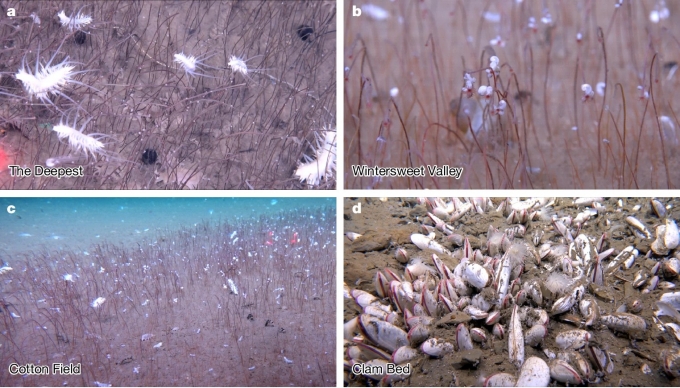 가장 깊은 지점에서는 수천 마리의 관벌레와 조개, 말미잘, 불가사리 등 다양한 생물이 함께 군락을 이루며 약 2km 이상의 바닥을 촘촘히 덮고 있었다.