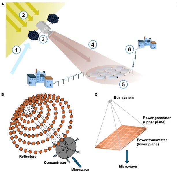 이 우주 태양광 발전 시스템은 정지궤도 위성에서 거울과 같은 반사경을 사용해 태양광을 모은다. 수집된 태양광은 지구 관측소로 보내 전기로 전환시키는 것이다. 이 개념은 1968년 체코‑미국 항공우주공학자 피터 글레이저(Peter Glaser)가 우주 경쟁이 한창이던 시기에 처음 제안됐다가, 탄소중립을 해야 하는 시점에 다시 제기된 개념이다.