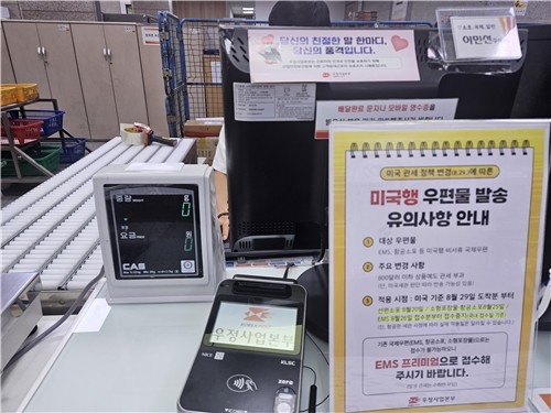 운송이 오래 걸리는 선박은 이미 미국행 소포 접수가 중단된 상태다. 우정사업본부는 "현재 국제우편망 체계상 발송이 어려워져 접수를 중단하고, 미 당국으로부터 국제우편의 관세 대납 주체로 허가받은 업체에 관세 대납을 맡기는 방안을 검토중"이라고 밝혔다.