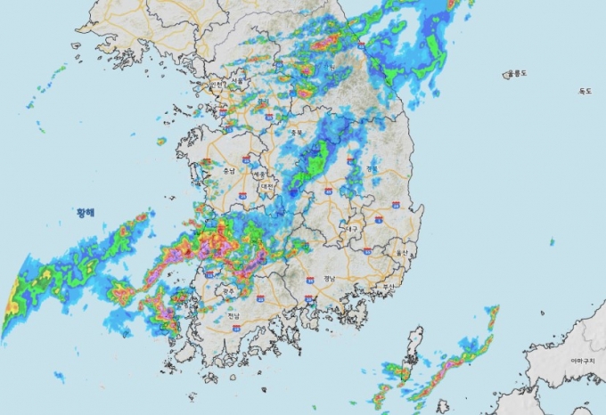 ▲비구름대가 남서쪽에 걸려있다. (사진=기상청)