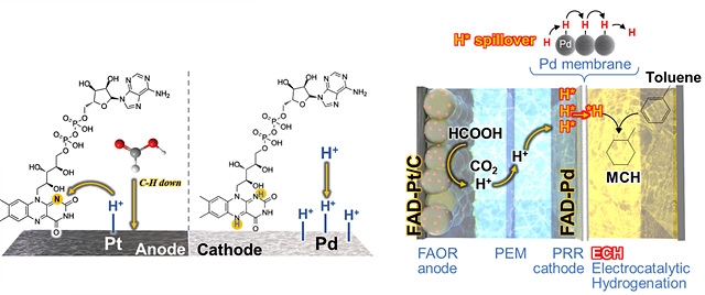 이 조효소는 수소가 팔라듐 전극 쪽에서는 수소 이온이 전극 표면에 더 잘 달라붙게 유도한다. 반면 백금 전극에서는 수소 중간체를 전극 표면에서 제거하는 역할을 한다. 표면에 수소 중간체가 남아 있으면 포름산이 접근하지 못해 반응이 지연된다. 수소가 나오는 쪽은 팔라듐 전극이지만, 백금 전극에서의 반응도 활성화돼야 전체 시스템의 전력 소모가 줄어든다.